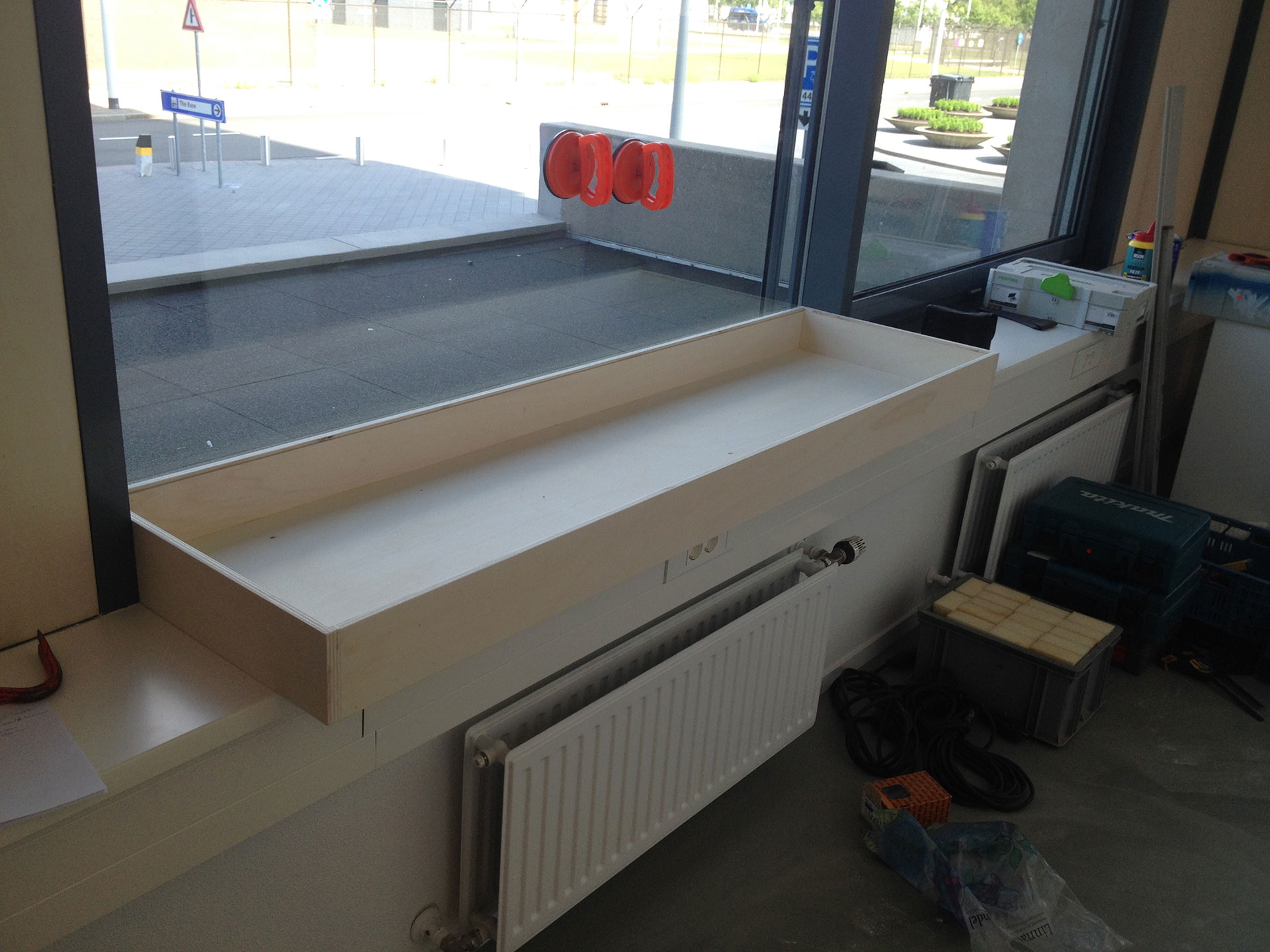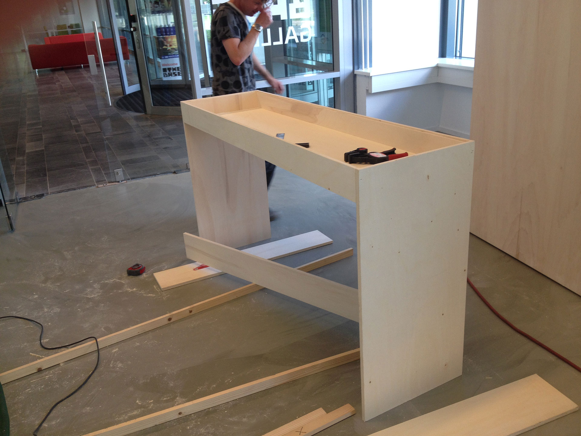 en bij het maken van vitrine's en bankjes voor de tentoonstelling.